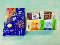 アーモンドケーキをベースにマロングラッセ、ラムレーズン、あんず、オレンジの焼き菓子です。レッテルには土浦の行事や観光名所を紹介しています。