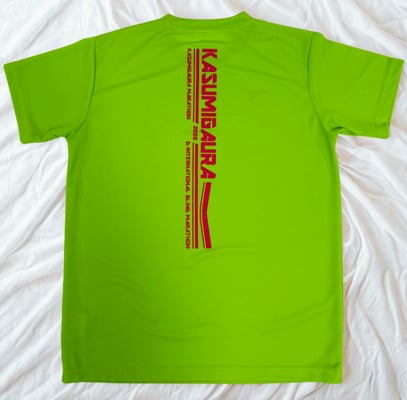 Tシャツ背面の縦のラインは、ランナーがゴールを目指してまっすぐに進む「道」、そして、ブラインドランナーと伴走者を結ぶ「絆」を象徴しています。